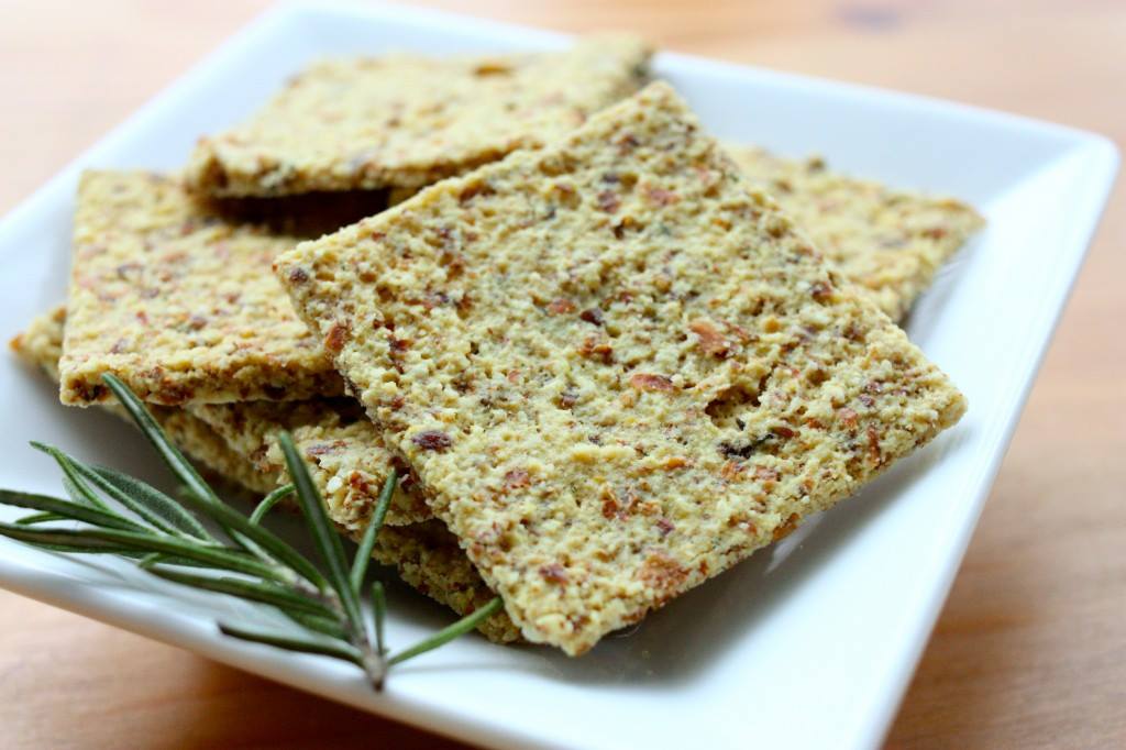 Nutrition Facts: Serving Size 2 crackers Serves 12 Amount Per Serving Calories 75 % Daily Value* Total Fat 6.6g 10% Saturated Fat 0.2g Cholesterol 0g 0% Sodium 97.5mg 4% Total Carbohydrate 2.5g 1% Dietary Fiber 1.5g 6% Sugars 0.3g Protein 2.5g 5%